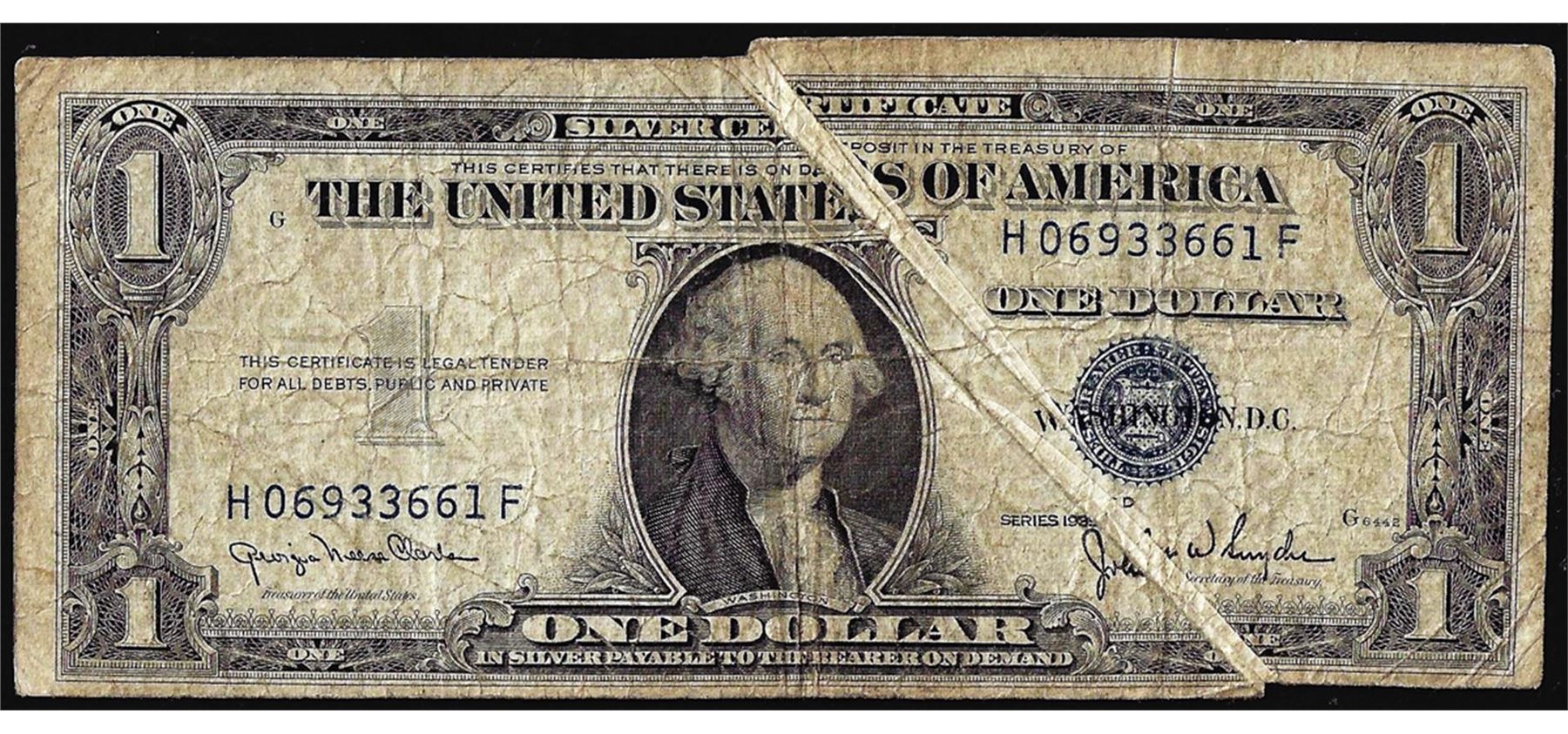 One 1935D $1 Silver Certificate Note Gutter Fold ERROR.