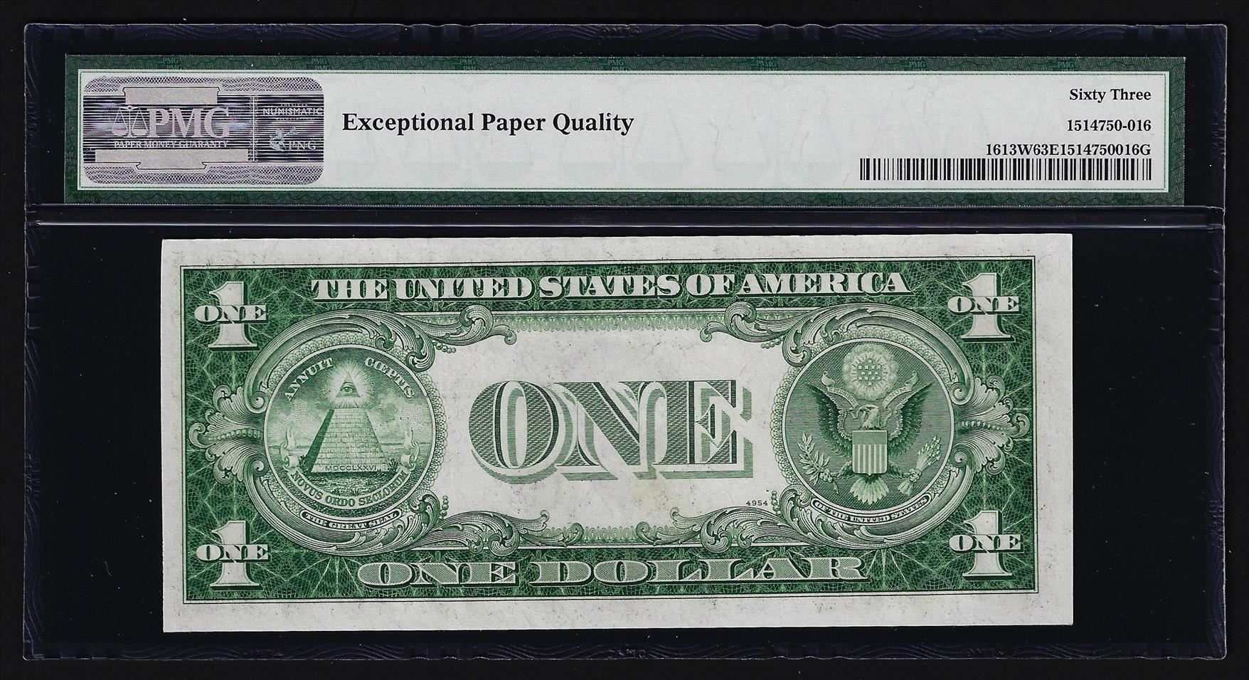 One 1935D $1 Silver Certificate Note Wide PMG Choice Uncirculated 63EPQ. PMG Certified.