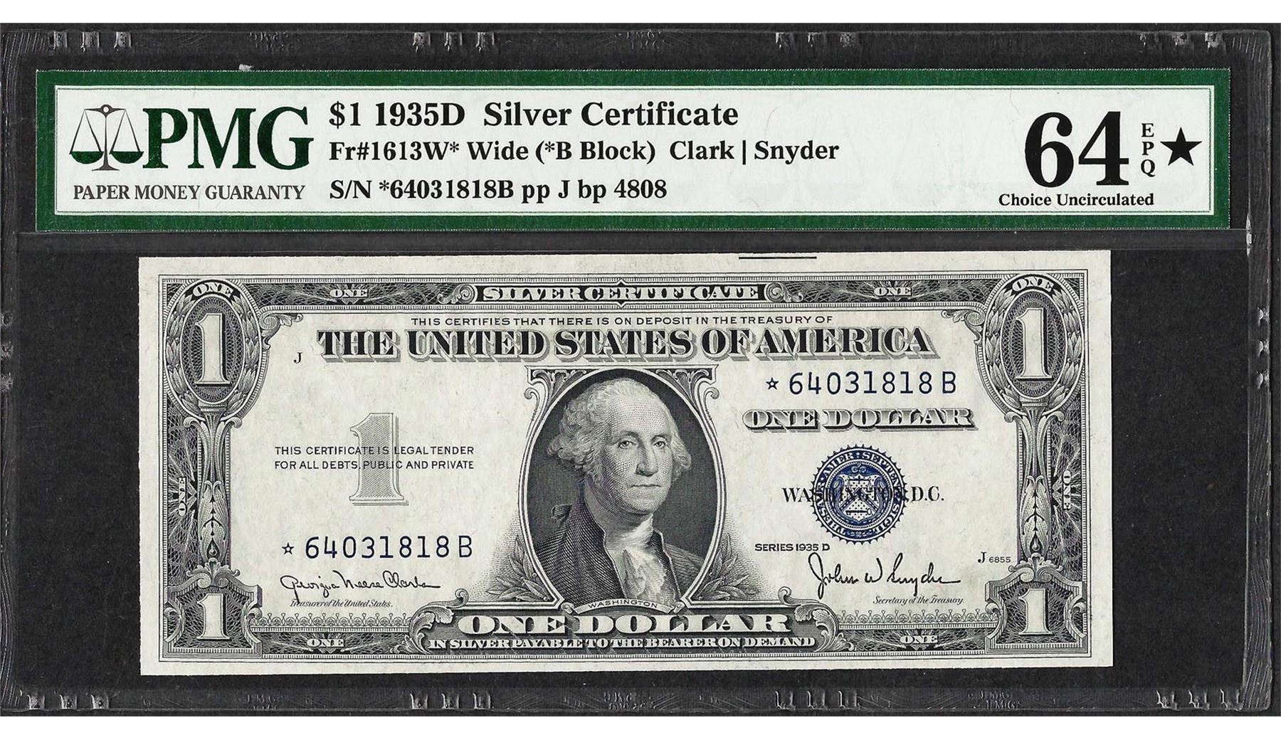 1935D $1 Silver Certificate STAR Note Fr.1613W* PMG Choice Uncirculated 64EPQ