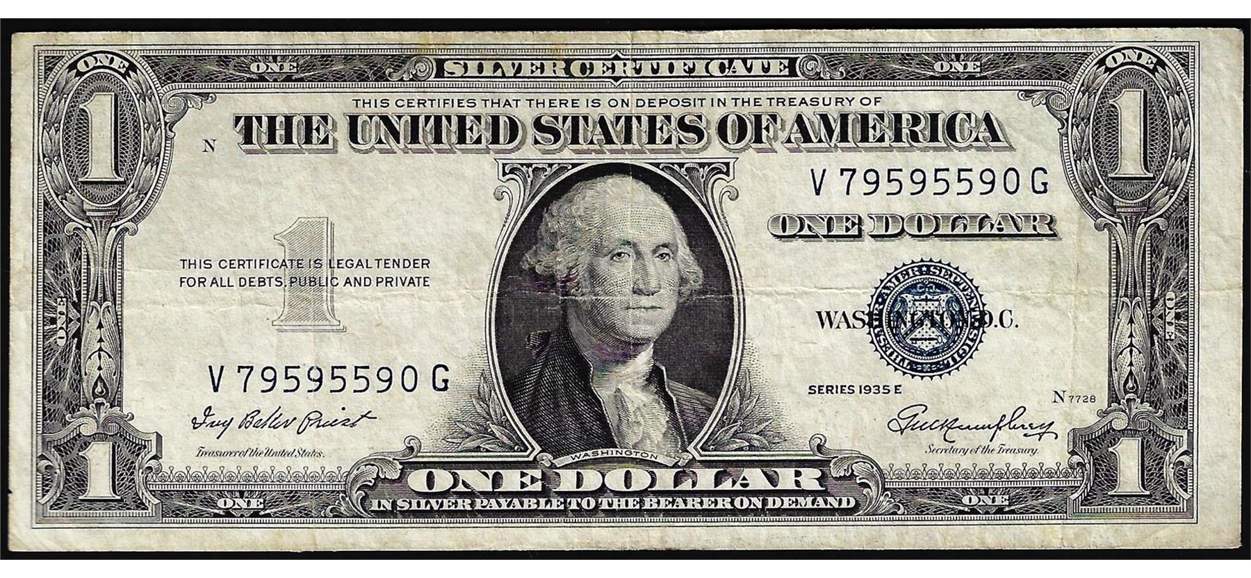 One 1935E $1 Silver Certificate Misaligned Back Printing Error Note.