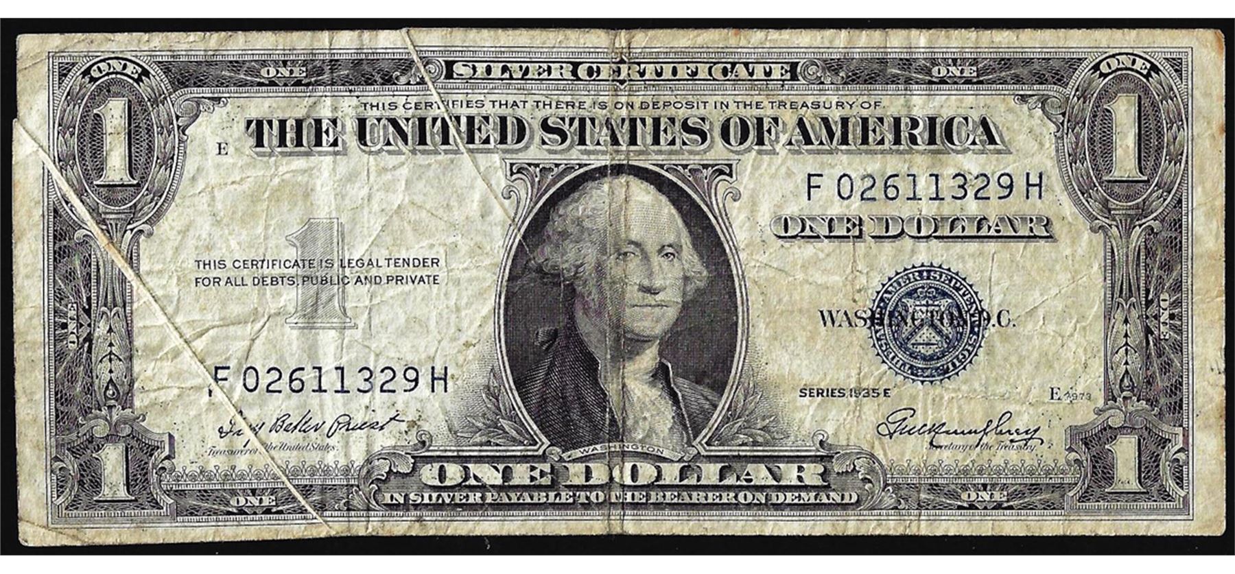 One 1935E $1 Silver Certificate Note Double Gutter Fold ERROR.