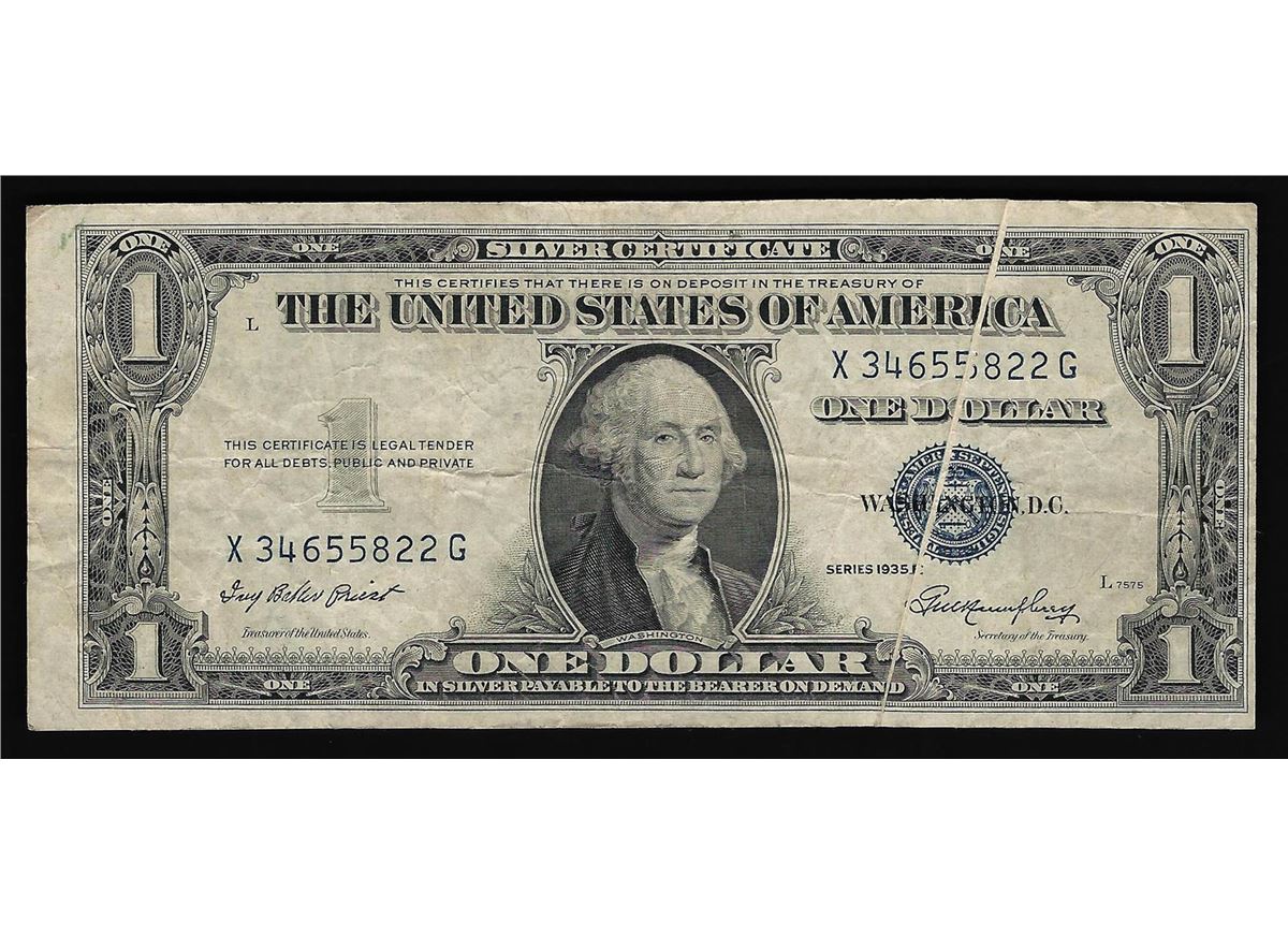 One 1935E $1 Silver Certificate Note ERROR Gutterfold.