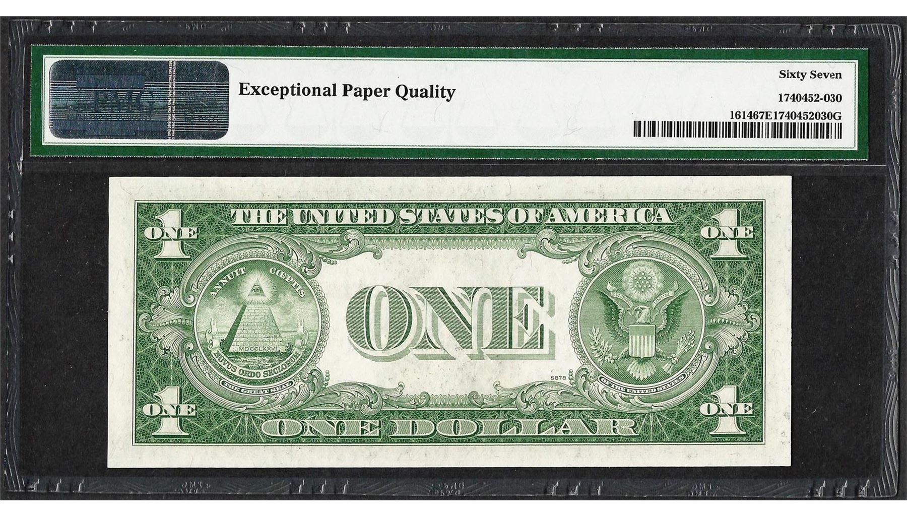 One 1935E $1 Silver Certificate Note Fr.1614 PMG Superb Gem Uncirculated 67EPQ. PMG Certified.