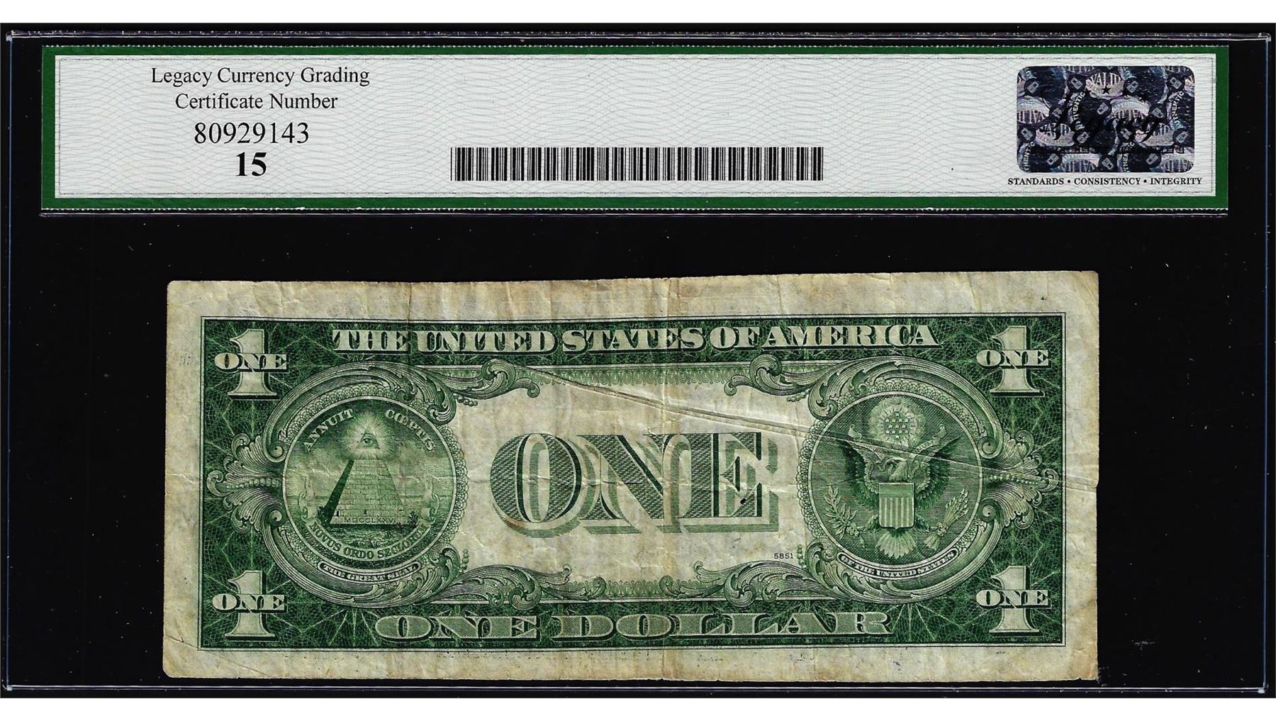 One 1935E $1 Silver Certificate Note Gutter Fold Error Fr.1614 Legacy Fine 15. Legacy Graded.