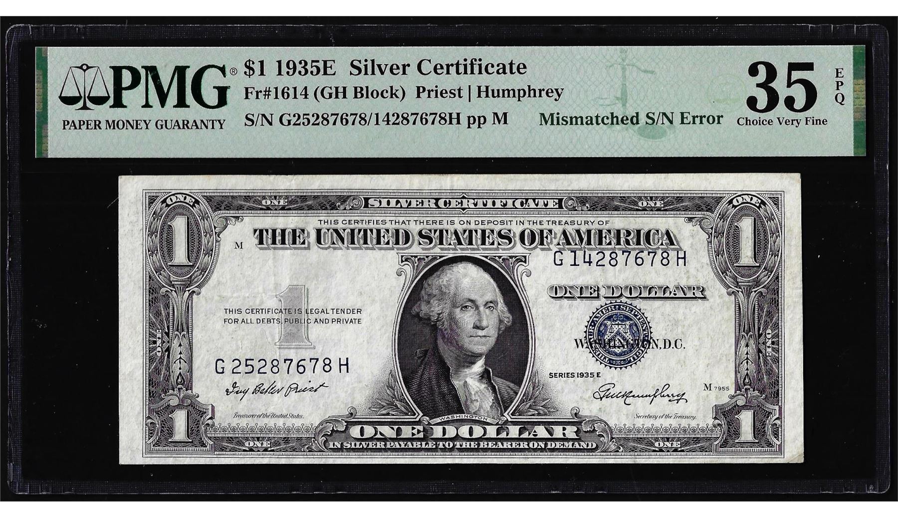 1935E $1 Silver Certificate Note Mismatched S/N ERROR PMG Choice Very Fine 35EPQ