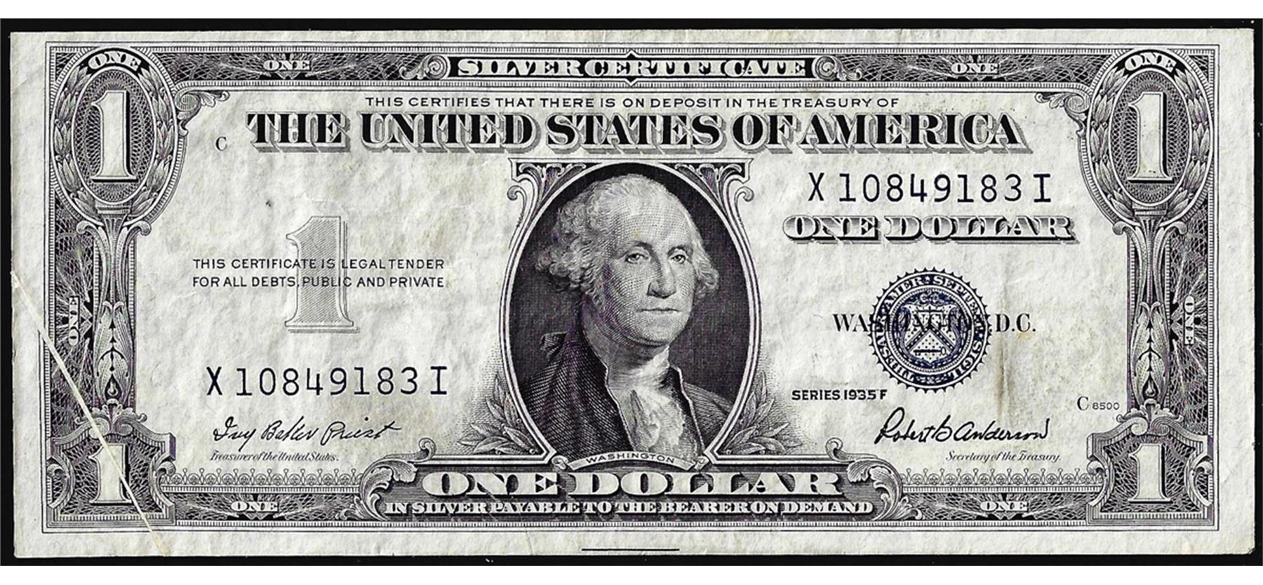 One 1935F $1 Silver Certificate Note Gutter Fold ERROR.