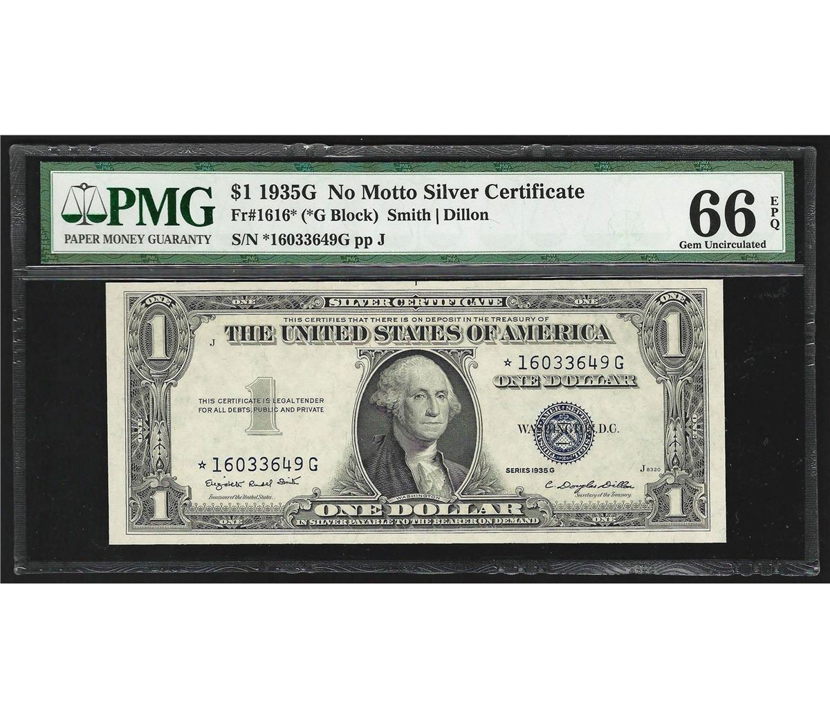 1935G No Motto $1 Silver Certificate STAR Note PMG Gem Uncirculated 66EPQ