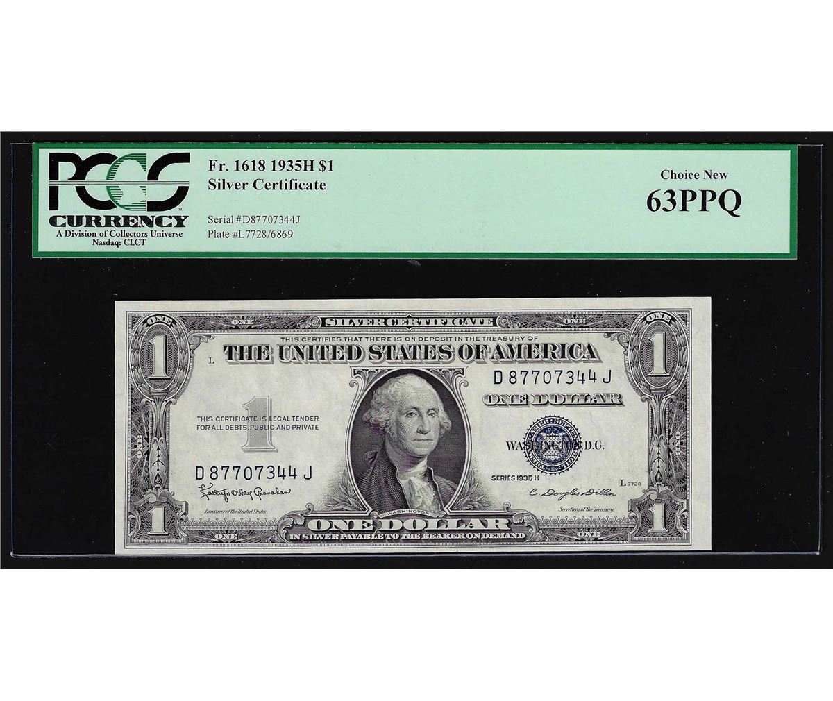 One 1935H $1 Silver Certificate Note PCGS Choice New 63PPQ. PCGS Graded.