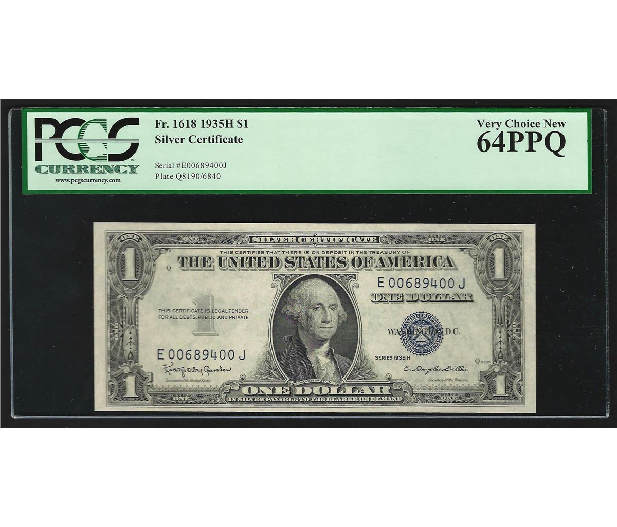 One 1935H $1 Silver Certificate Note PCGS Very Choice New 64PPQ. PCGS Graded.