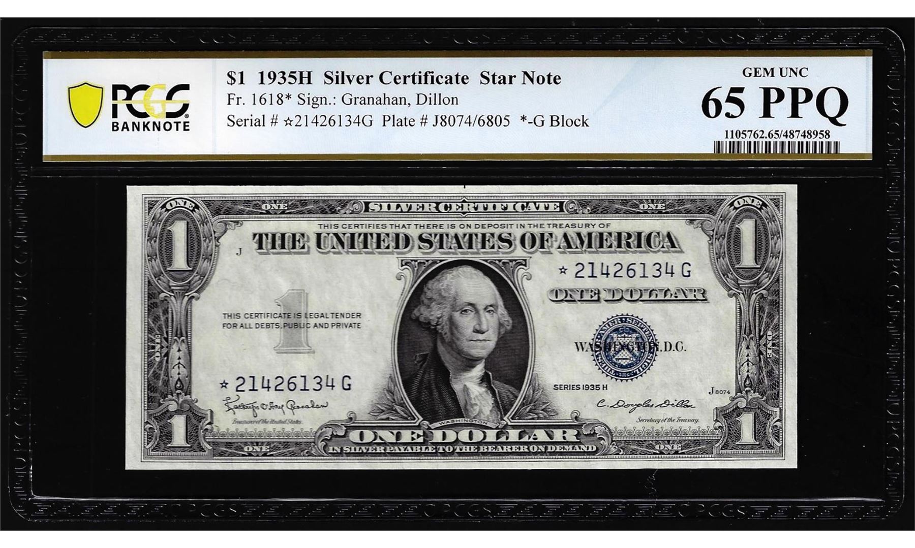 1935H $1 Silver Certificate STAR Note Fr.16198* PCGS Gem Uncirculated 65PPQ
