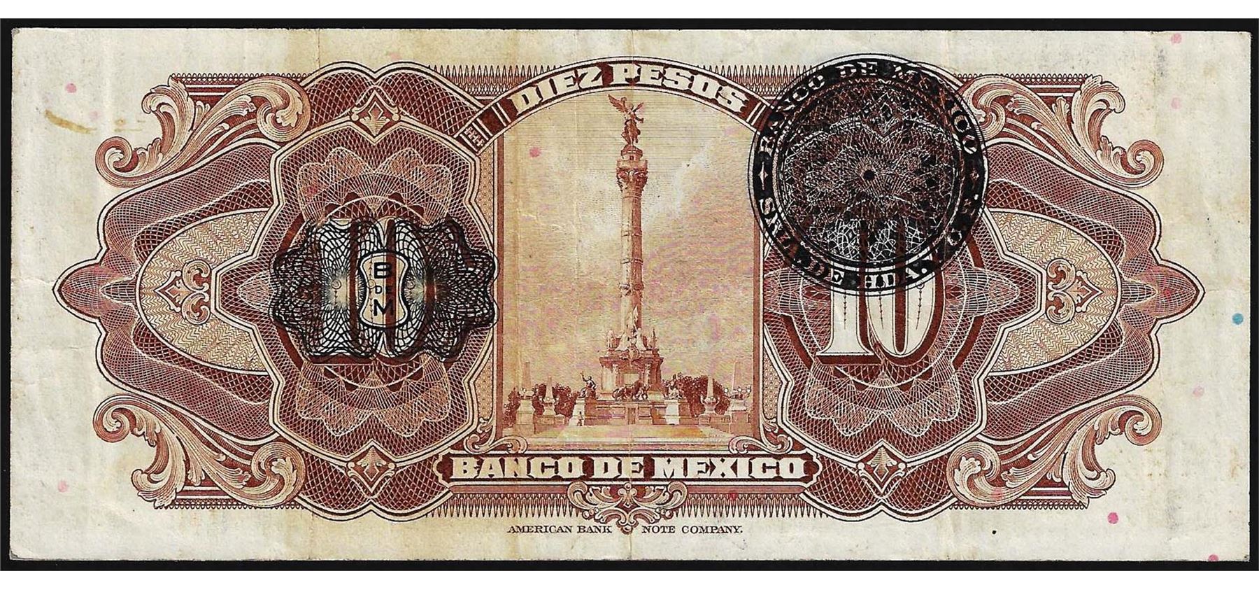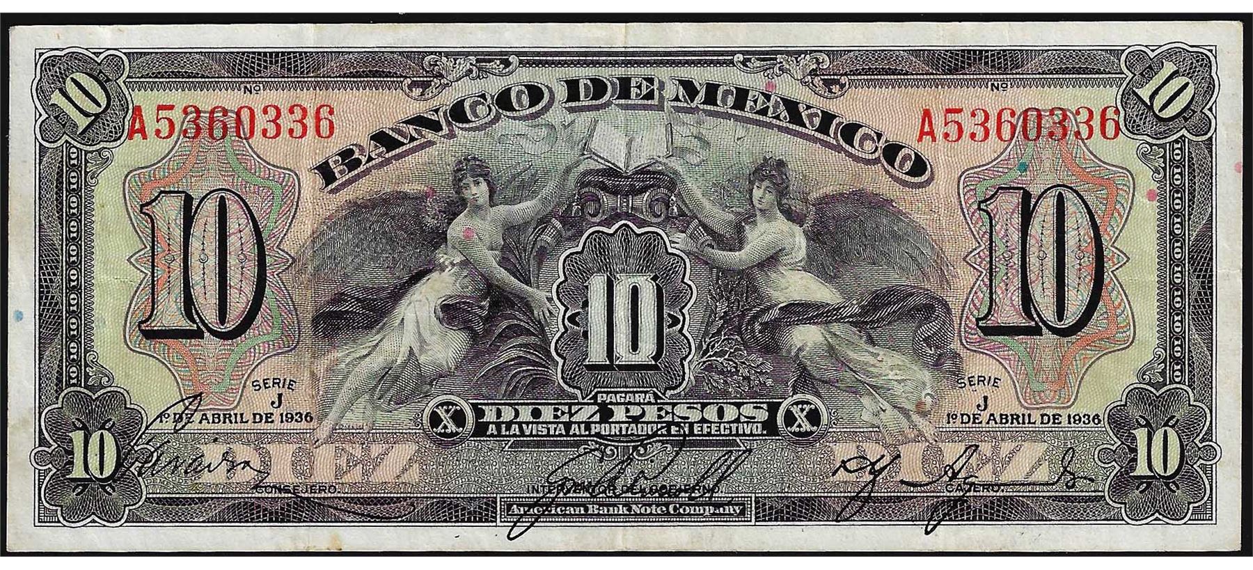 One 1936 10 Pesos Banco De Mexico Bank Note.