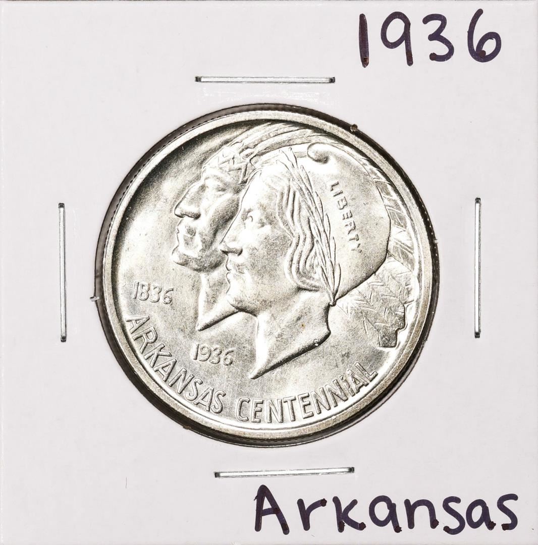 One 1936 Arkansas Centennial Commemorative Half Dollar Coin.