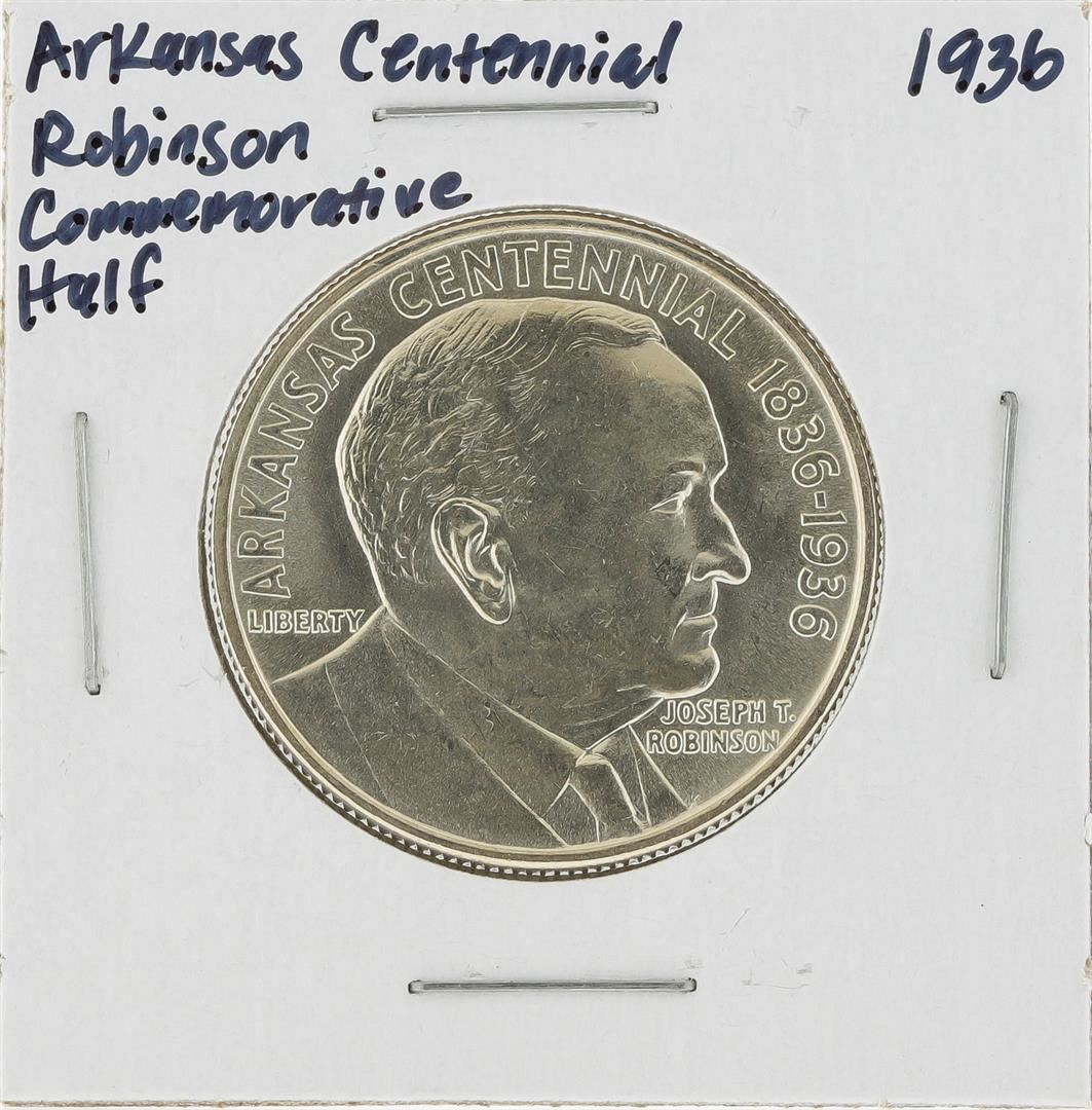 One 1936 Arkansas Centennial Robinson Commemorative Half Dollar Coin.