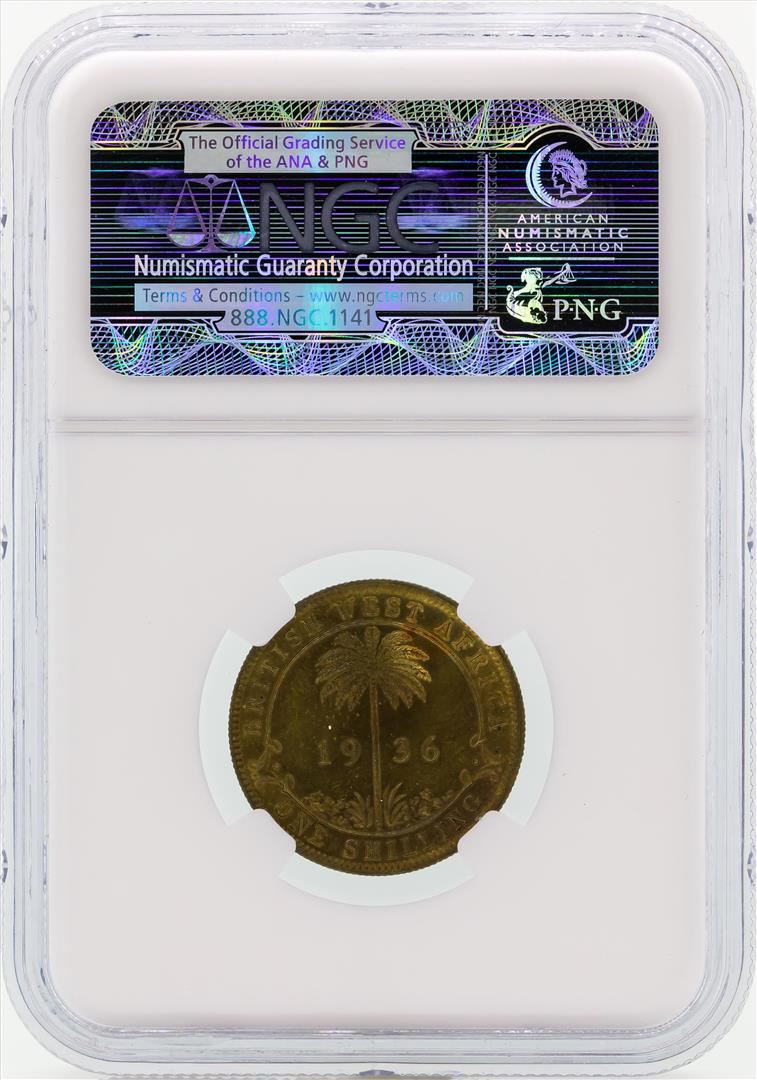 One 1936 BW Africa 1 Shilling Coin NGC MS63. NGC Certified.