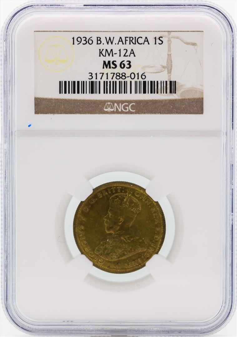 One 1936 BW Africa 1 Shilling Silver Coin NGC MS63. NGC Certified.