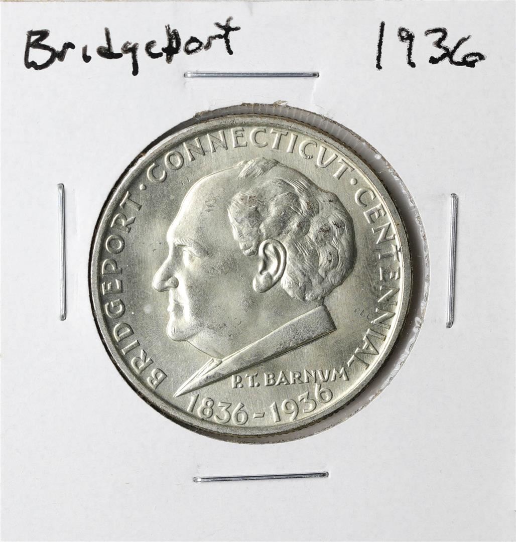One 1936 Bridgeport Commemorative Half Dollar Coin.