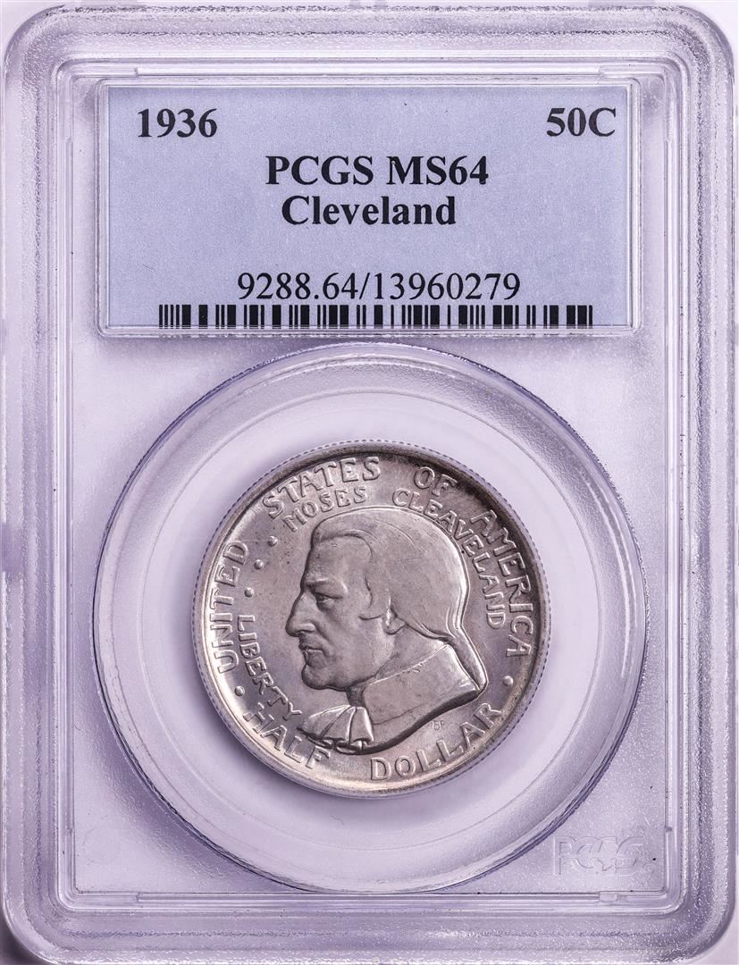 One 1936 Cleveland Commemorative Half Dollar Silver Coin PCGS MS64. PCGS Graded.