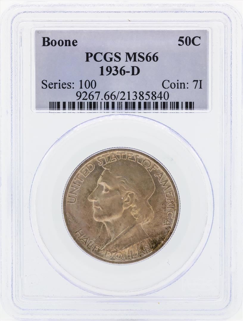 One 1936-D Boone Commemorative Half Dollar Coin PCGS MS66. PCGS Graded.