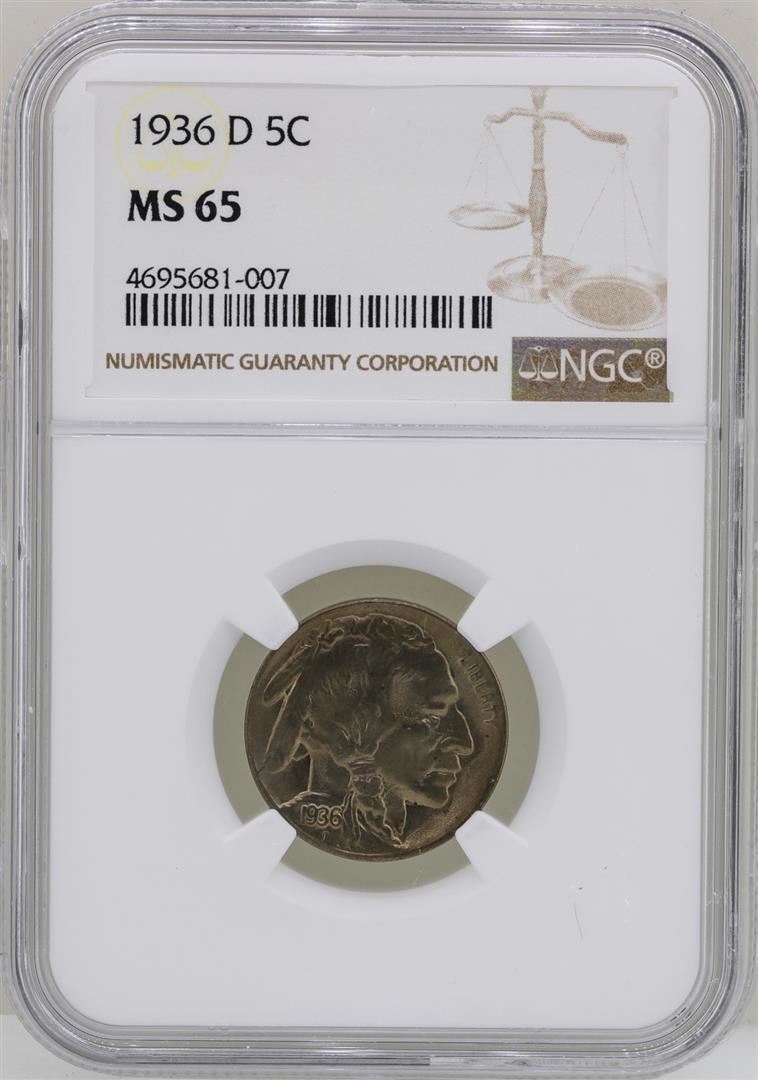 One 1936-D Buffalo Nickel Coin NGC MS65. NGC Certified.