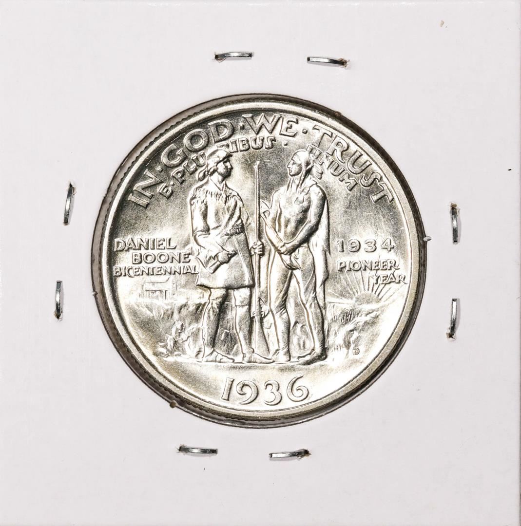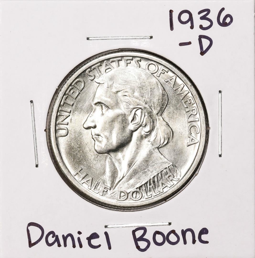 One 1936-D Daniel Boone Commemorative Half Dollar Coin.