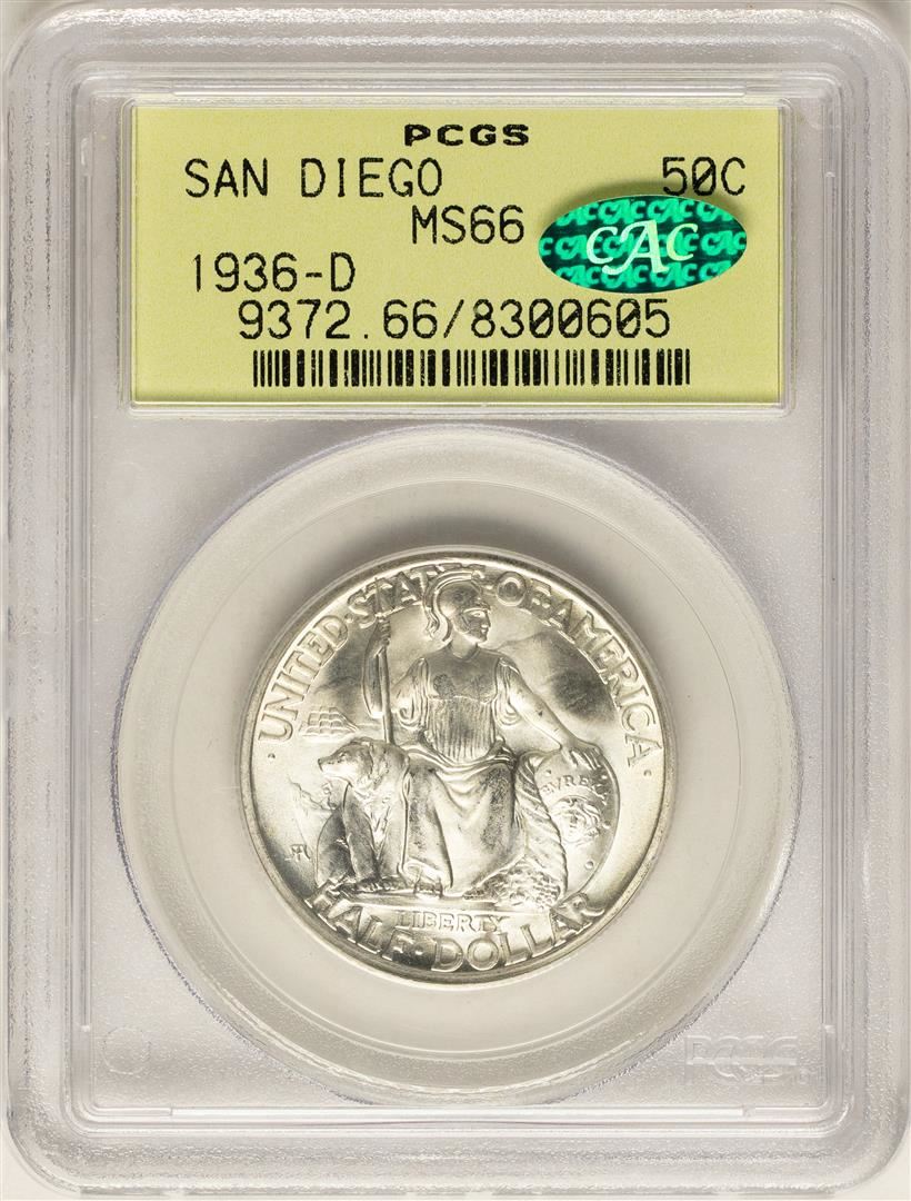 1936-D San Diego Exposition Commemorative Half Dollar Coin PCGS MS66 CAC Old Hol