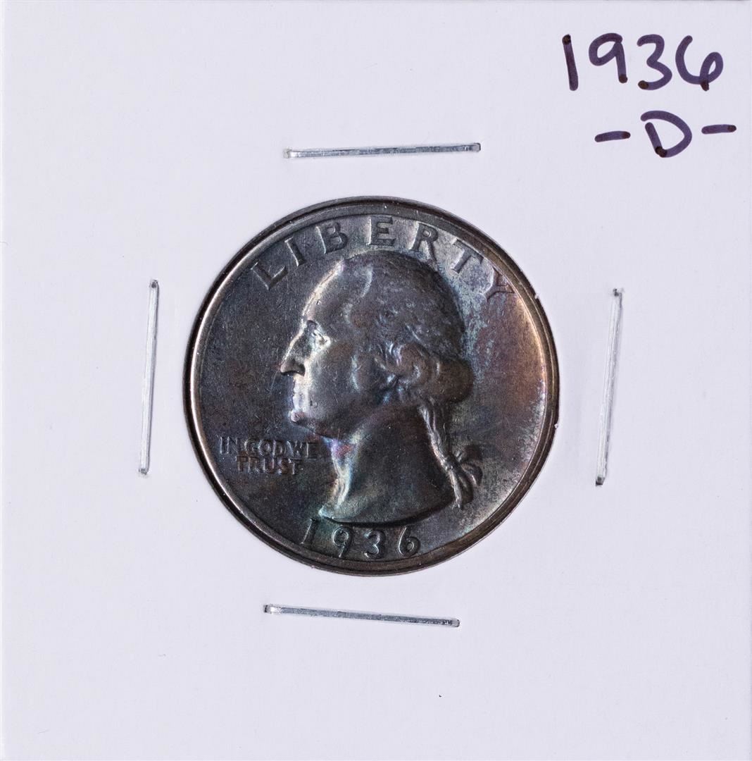 One 1936-D Washington Quarter Coin Amazing Toning.