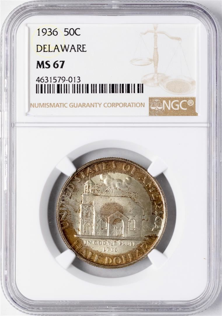 One 1936 Delaware Commemorative Half Dollar Coin NGC MS67. NGC Certified.