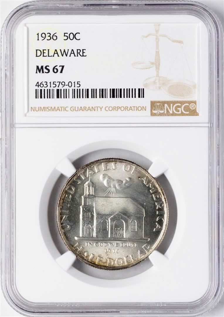 One 1936 Delaware Commemorative Half Dollar Coin NGC MS67. NGC Certified.