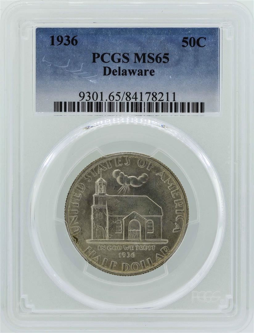 One 1936 Delaware Tercentenary Commemorative Half Dollar Coin PCGS MS65. PCGS Graded.
