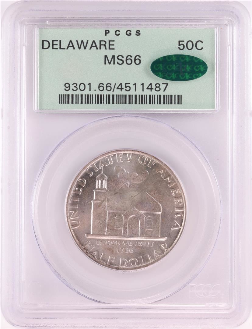 One 1936 Delaware Tercentenary Commemorative Half Dollar Coin PCGS MS66 CAC. PCGS Graded.