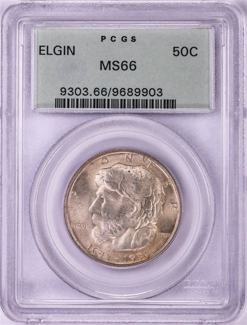 One 1936 Elgin Commemorative Half Dollar Coin PCGS MS66 Old Green Holder. PCGS Graded.