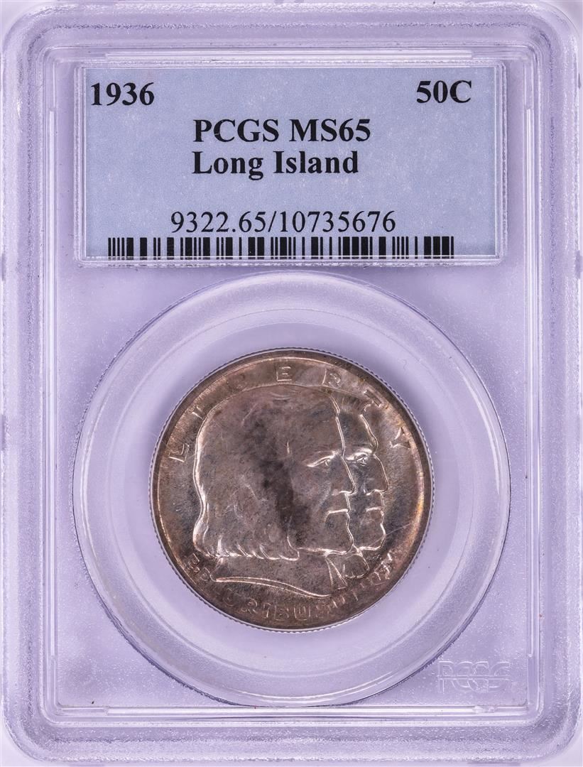 One 1936 Long Island Commemorative Half Dollar Coin PCGS MS65. PCGS Graded.