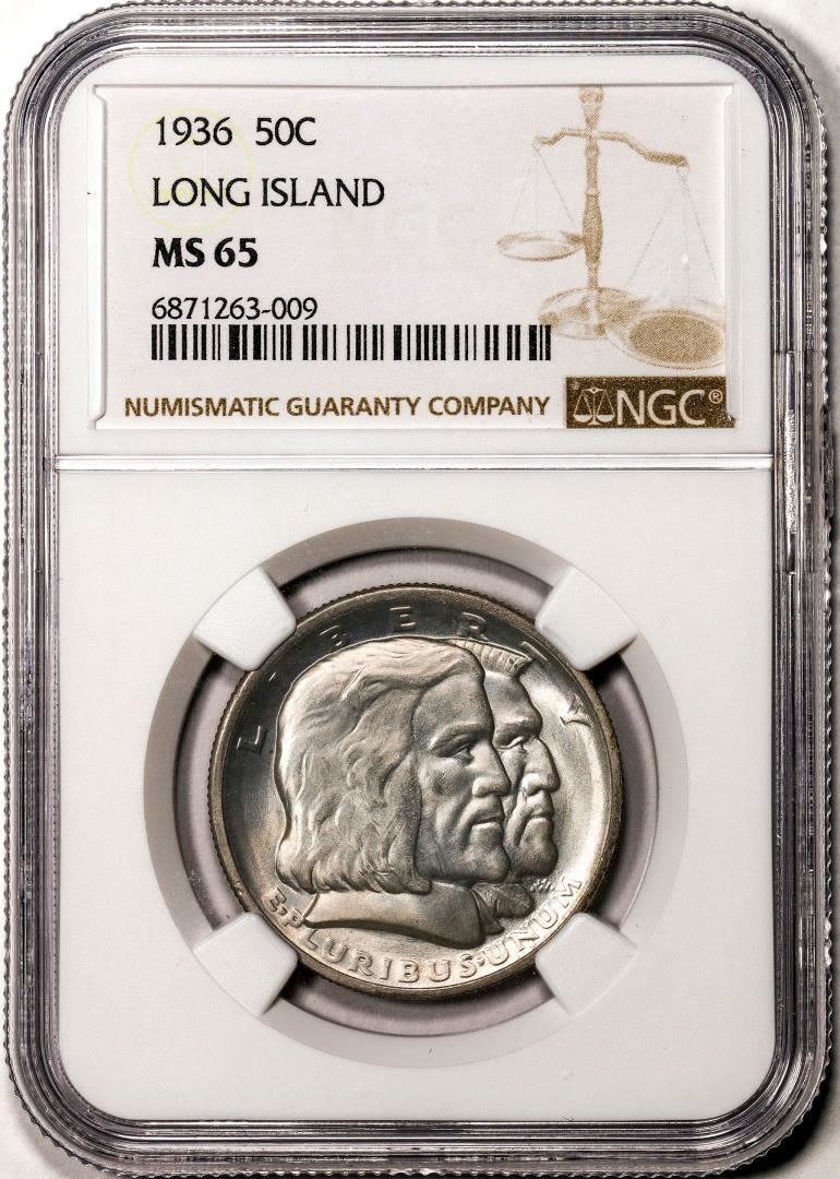 One 1936 Long Island Tercentenary Commemorative Half Dollar Coin NGC MS65. NGC Certified.