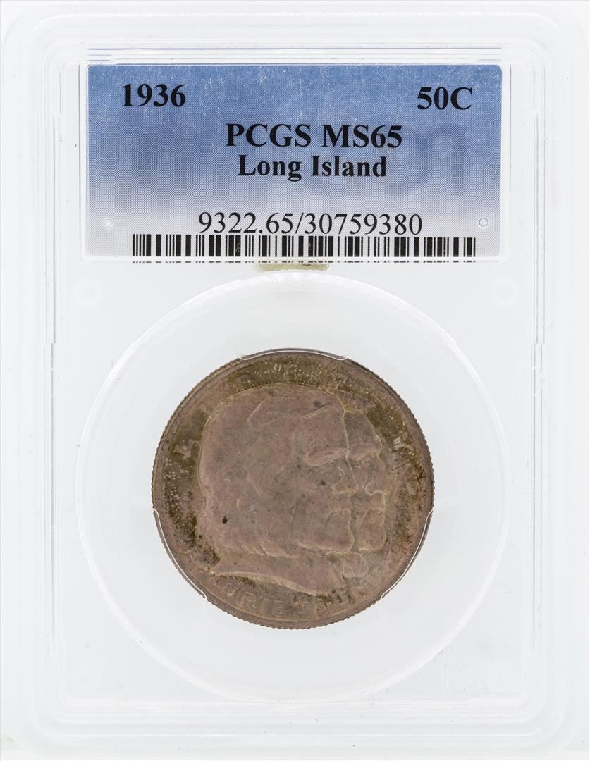 One 1936 Long Island Tercentenary Commemorative Half Dollar Coin PCGS MS65. PCGS Graded.