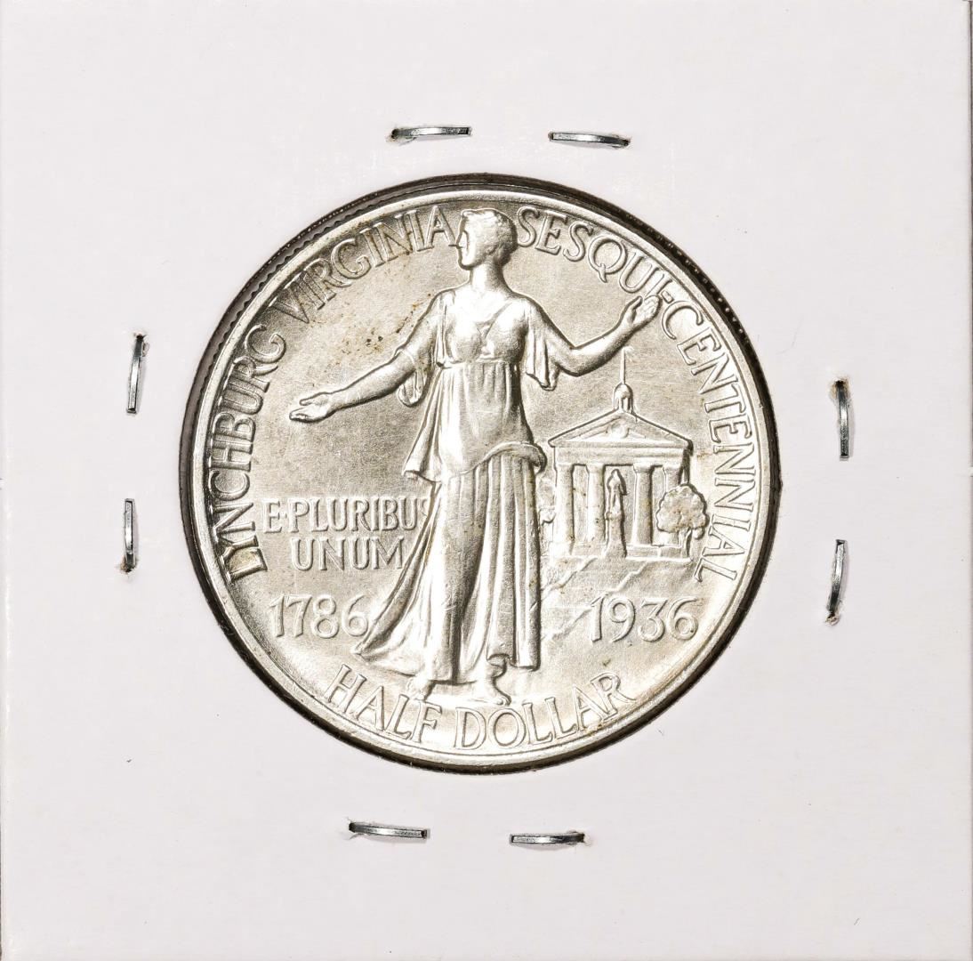 One 1936 Lynchburg Sesqui-Centennial Commemorative Half Dollar Coin.