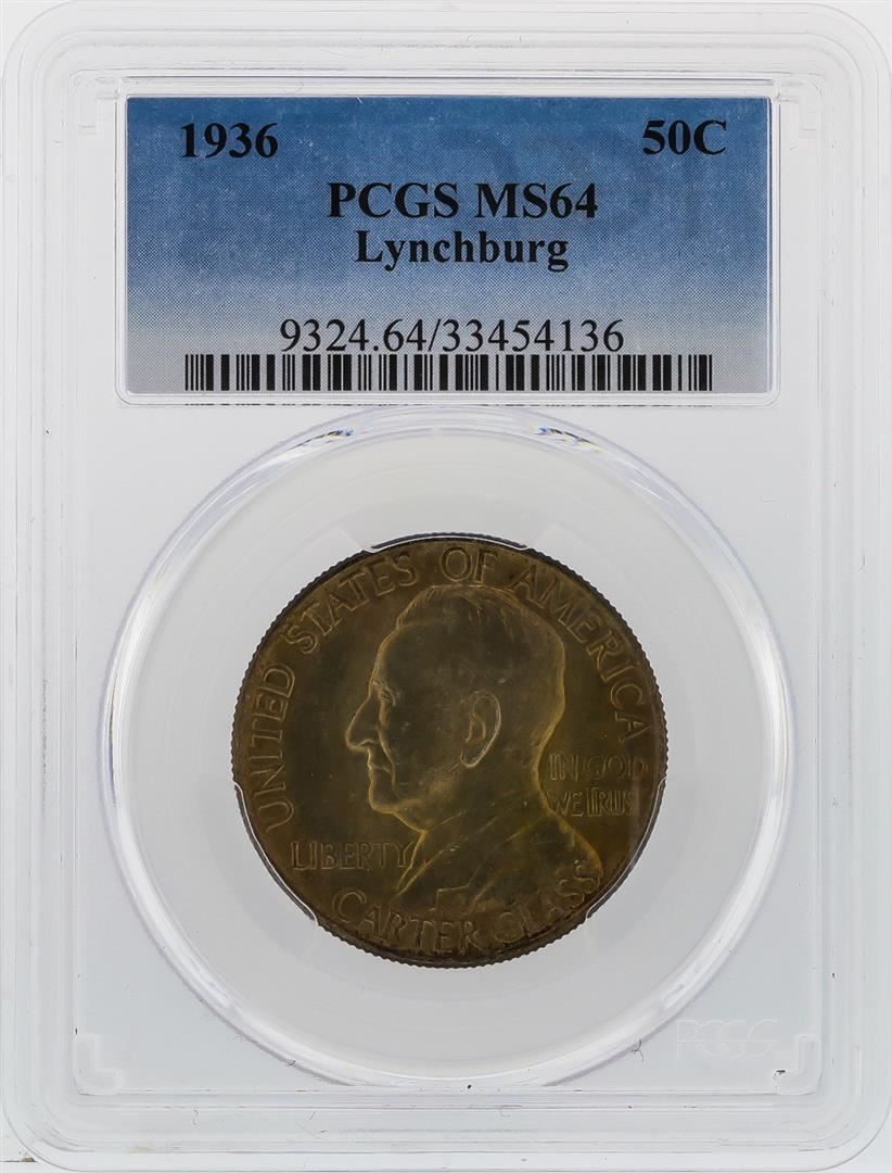 One 1936 Lynchburg Virginia Sesquicentennial Commemorative Half Dollar Coin PCGS MS64. PCGS Graded.