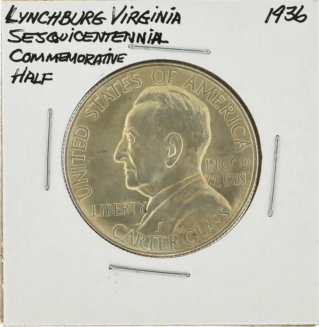 One 1936 Lynchburg Virginia Sesquicentennial Commemorative Half Dollar Coin.