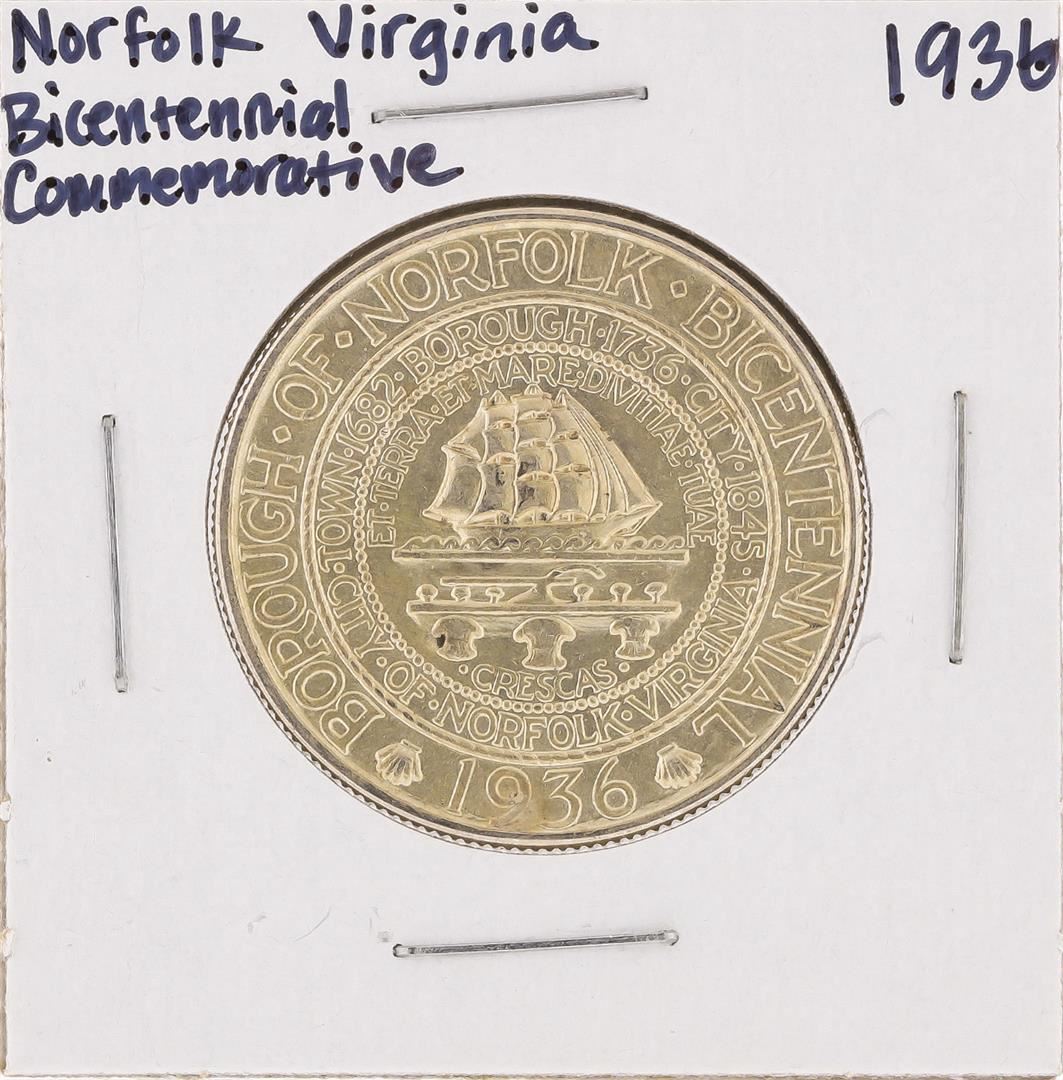 One 1936 Norfolk Virginia Bicentennial Commemorative Half Dollar Coin.