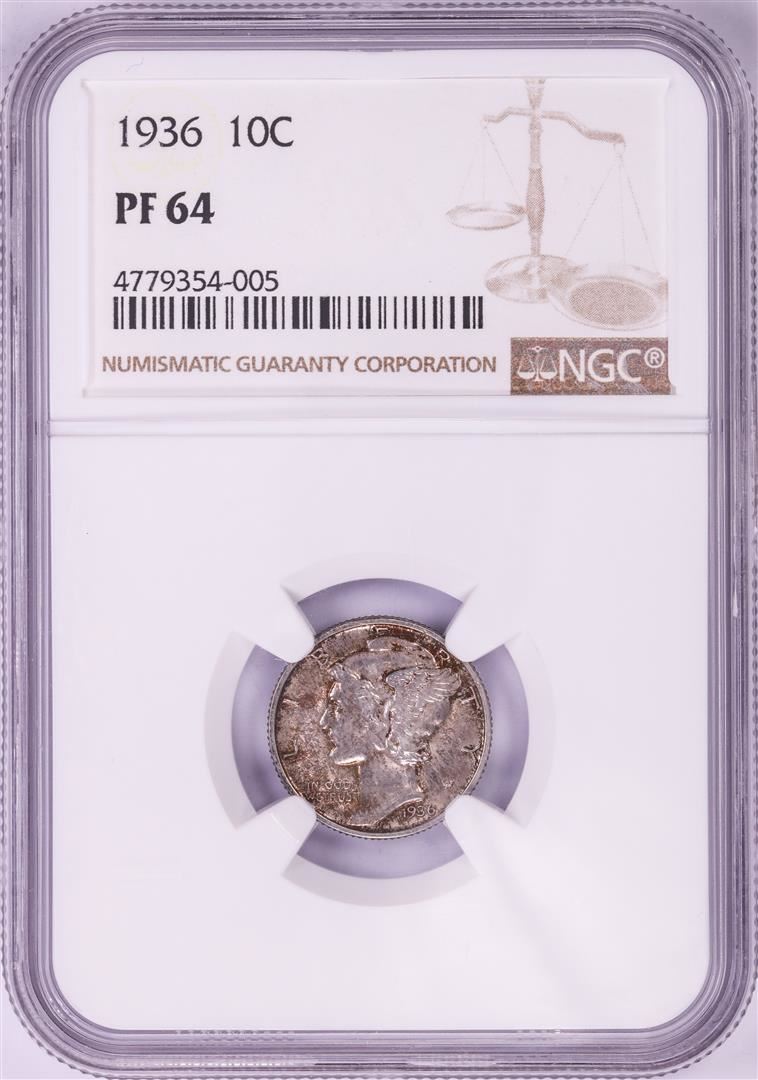 One 1936 Proof Mercury Dime Coin NGC PF64. NGC Certified.