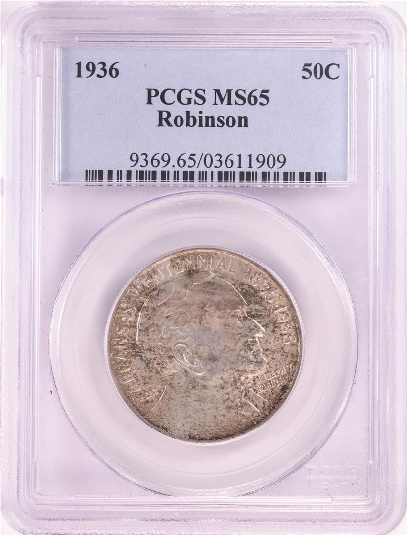 One 1936 Robinson Centennial Commemorative Half Dollar Coin PCGS MS65. PCGS Graded.