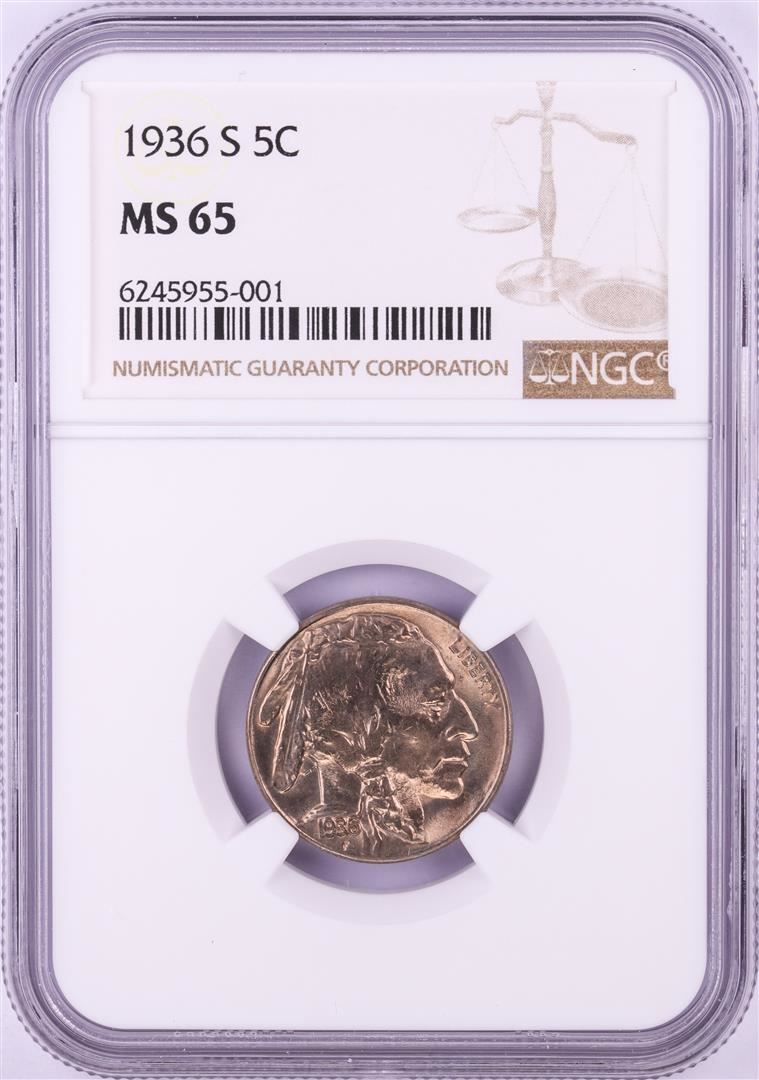 One 1936-S Buffalo Nickel Coin NGC MS65. NGC Certified.