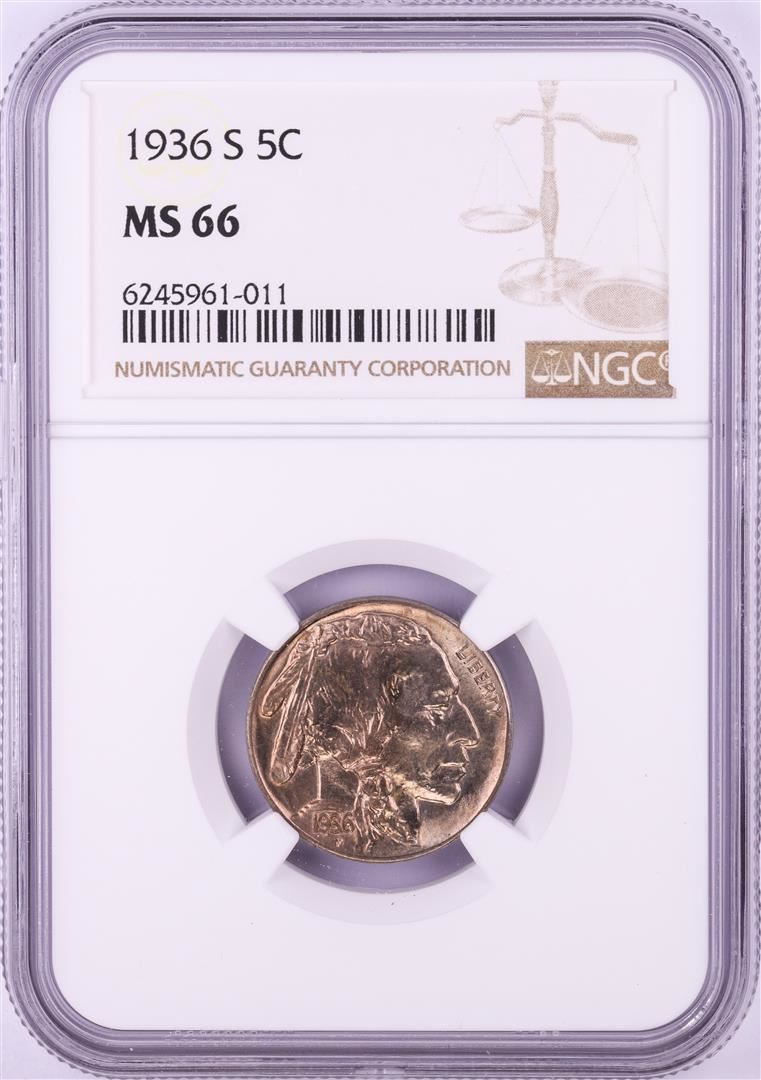 One 1936-S Buffalo Nickel Coin NGC MS66. NGC Certified.