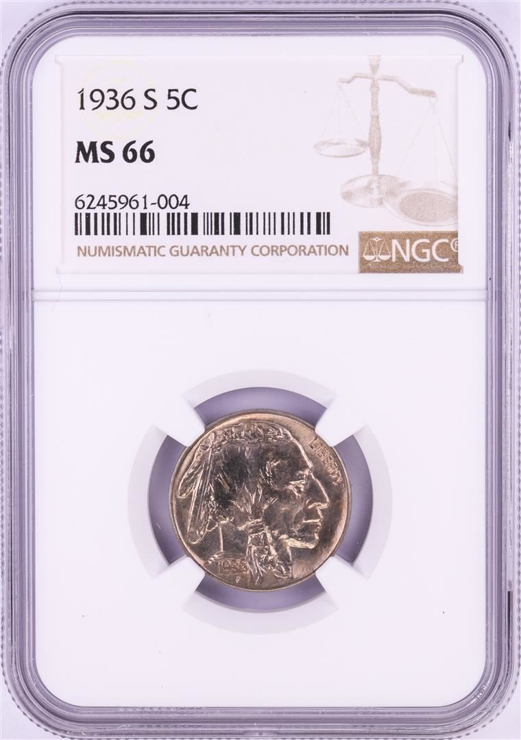 One 1936-S Buffalo Nickel Coin NGC MS66. NGC Certified.
