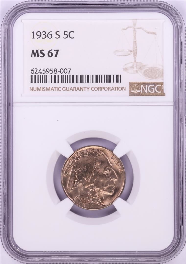 One 1936-S Buffalo Nickel Coin NGC MS67. NGC Certified.