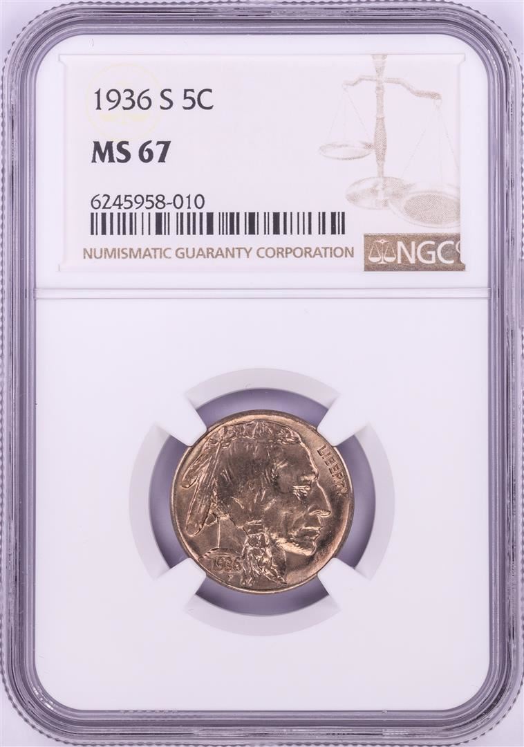 One 1936-S Buffalo Nickel Coin NGC MS67. NGC Certified.