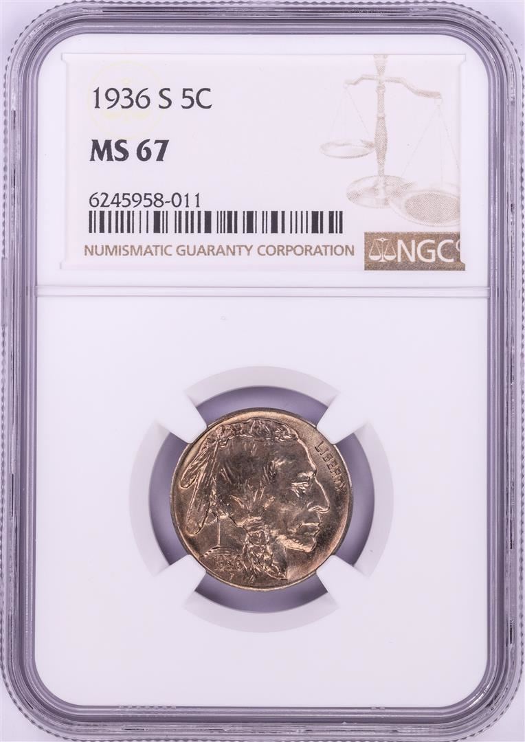 One 1936-S Buffalo Nickel Coin NGC MS67. NGC Certified.