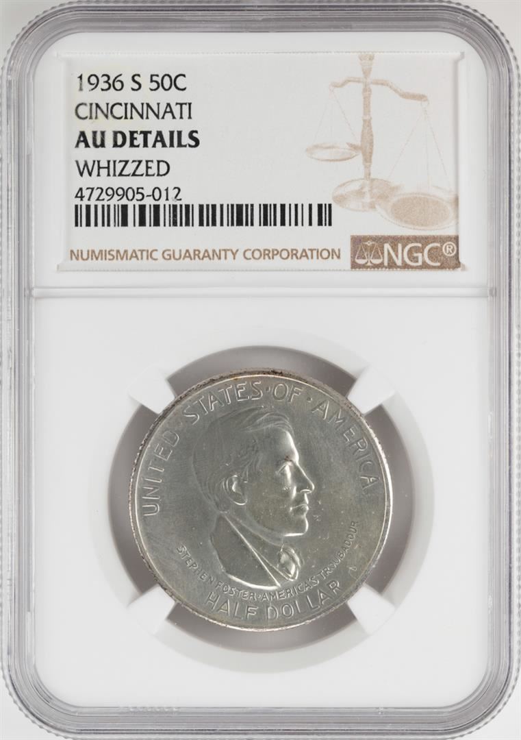 One 1936-S Cincinnati Centennial Commemorative Half Dollar Coin NGC AU Details. NGC Certified.