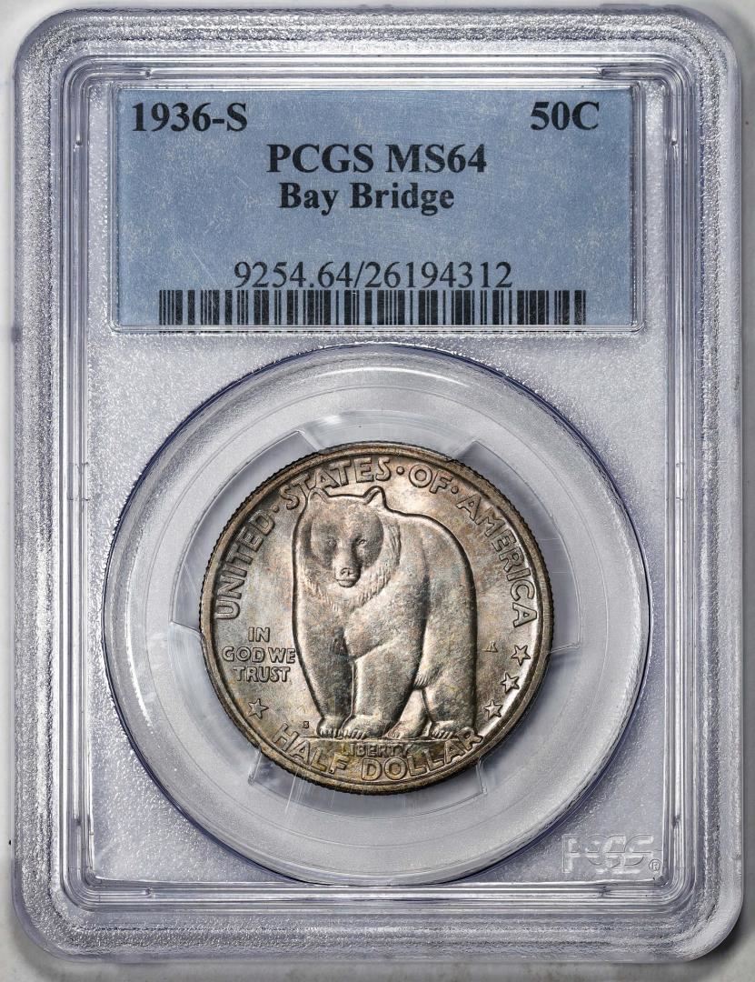 1936-S Oakland Bay Bridge Commemorative Half Dollar Coin PCGS MS64 Great Color