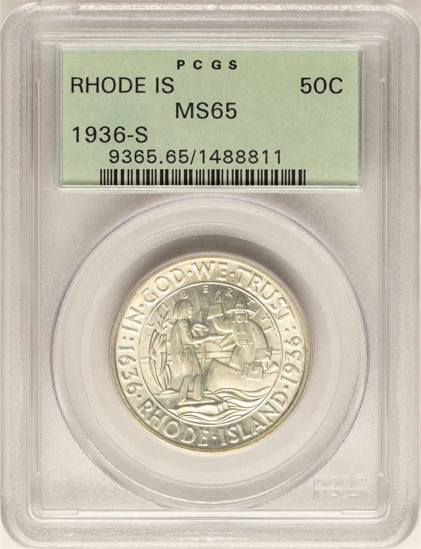 1936-S Rhode Island Commemorative Half Dollar Coin PCGS MS65 Old Green Holder