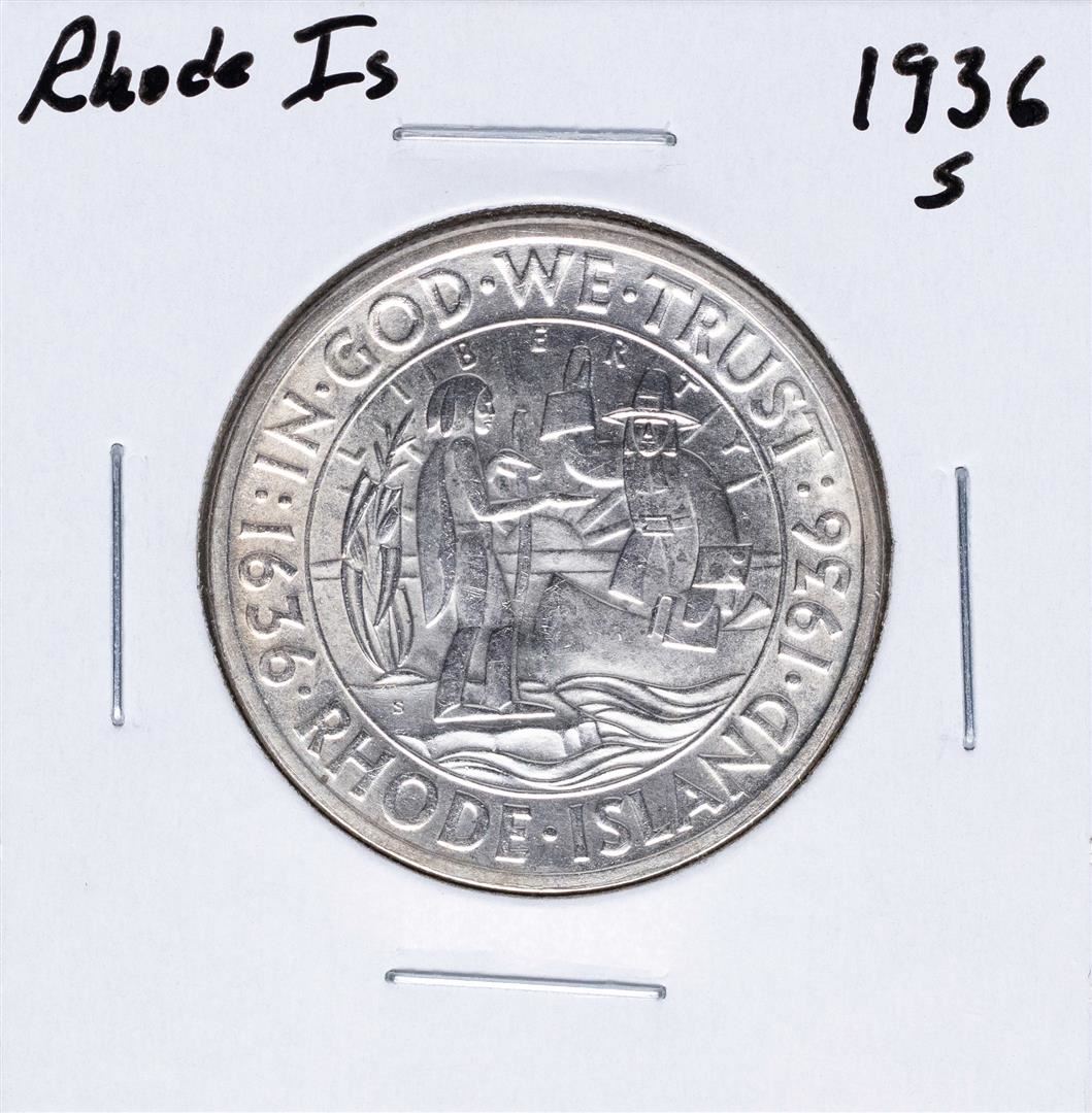 One 1936-S Rhode Island Commemorative Half Dollar Coin.